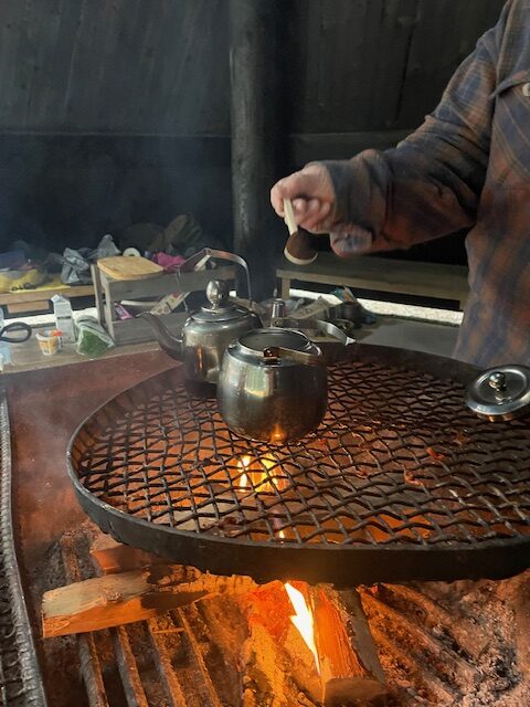 Avotuliruokailua Aulangon ulkoilumajan uudessa kodassa