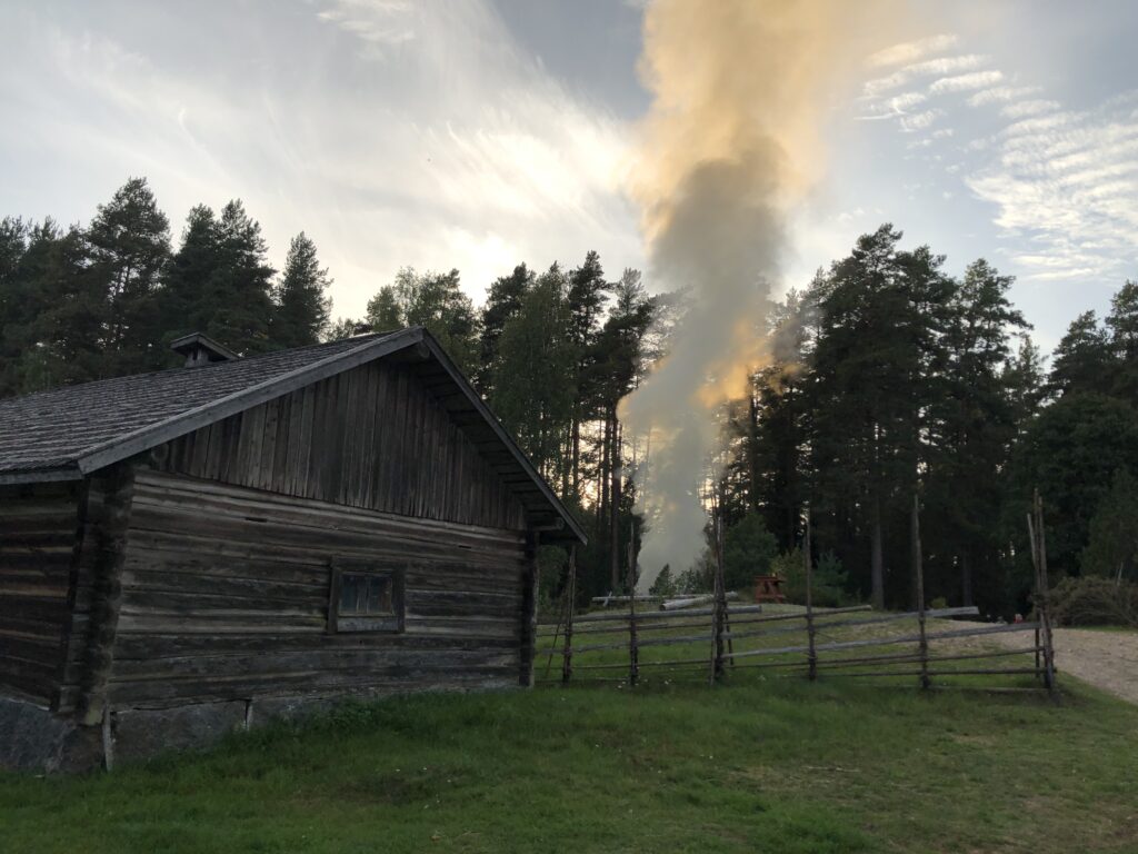 Kuva: Tervahauta paloi Korteniemen pihan tuntumassa ja savu oli juuri oikean väristä.